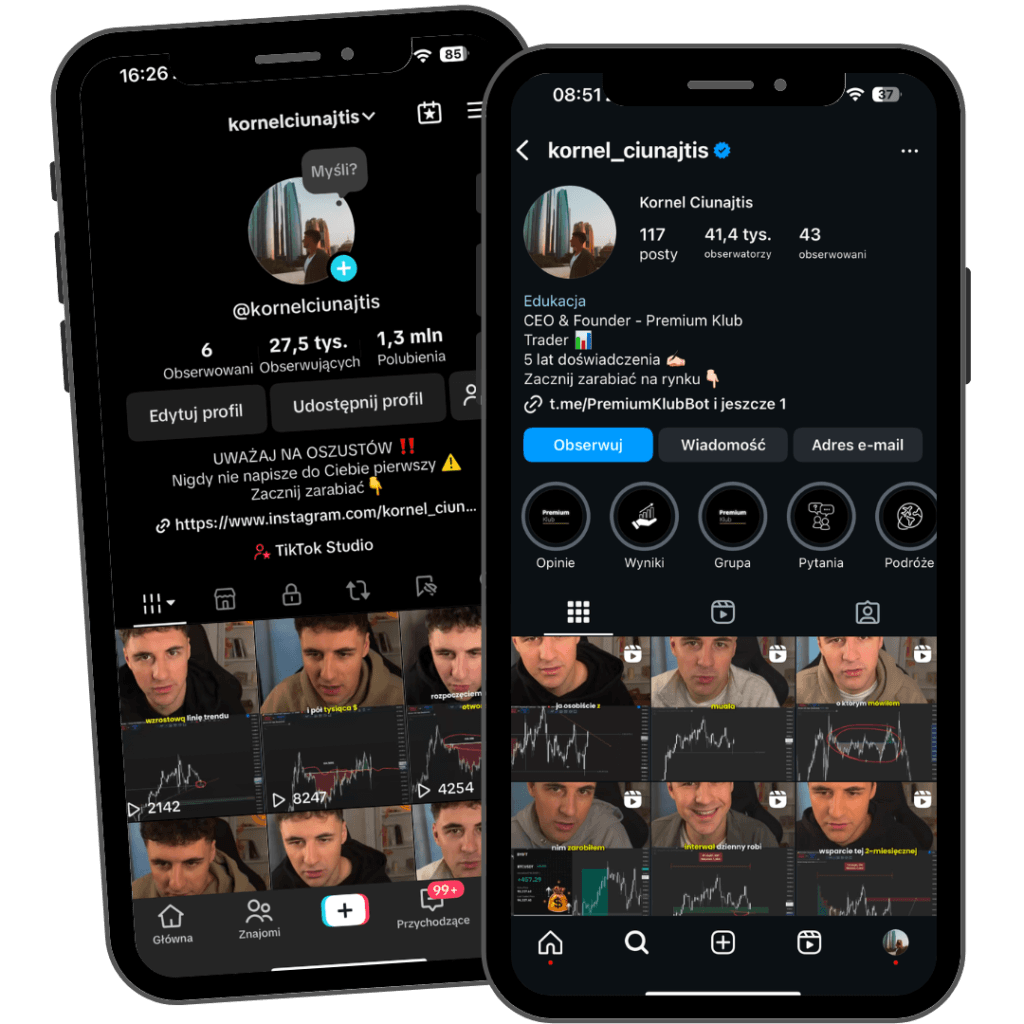 Mój kurs wyróżnia się kompleksowym podejściem. Od zera do poziomu zaawansowanego, dzielę się całą swoją wiedzą. Skupiam się na praktyce, błędach i uczę zrozumienia wykresu — co zaniedbuje spora część konkurencji.